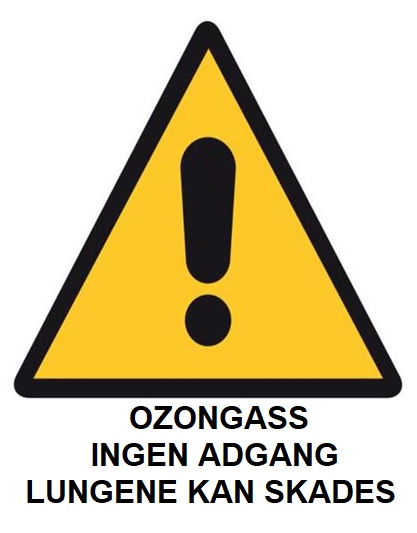 Plakat som varsler ozoneringsområde. Print ut og marker området.